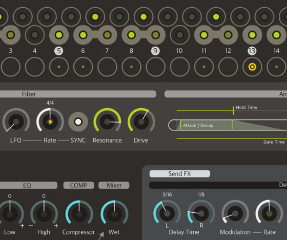 Koshiba is a 16-step AUv3-compatible gate sequencer plug-in effect that can convert sustain sounds into rhythmic phrases. Each step of the gate is synchronized to the DAW beat and has different volume, PAN, filter, LFO, and envelope parameters.