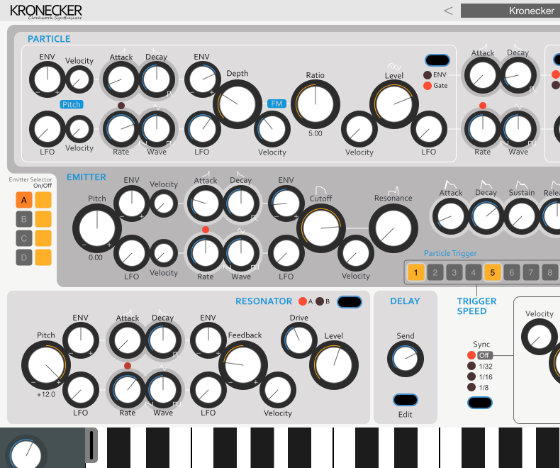 Kronecker is an AUv3-compatible synthesizer with a rhythm machine-like mechanism that repeatedly plays a note each time a keyboard key is pressed.