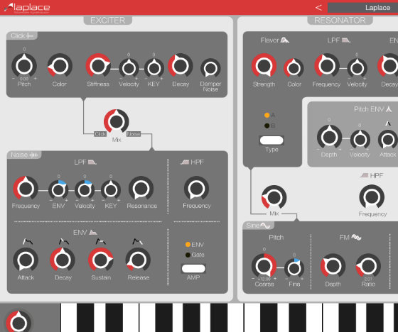 Laplace is an AUv3-compatible physical modeling synthesizer based on resonator synthesis, making it easy to create bowed strings, plucked strings, blown pipes, metallic sounds, and more.