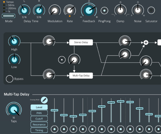 Yukawa is an AUv3 compatible effect plug-in that combines a tempo-synchronized multi-tap delay that produces rhythmic phrases, a modifiable stereo delay, and a DJ mixer-style filter.