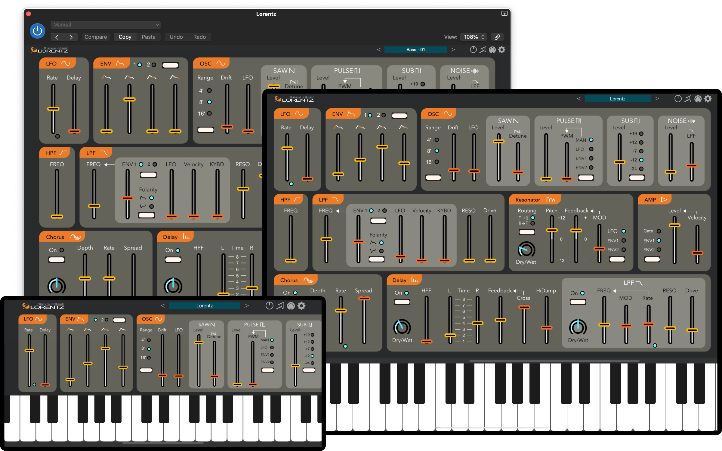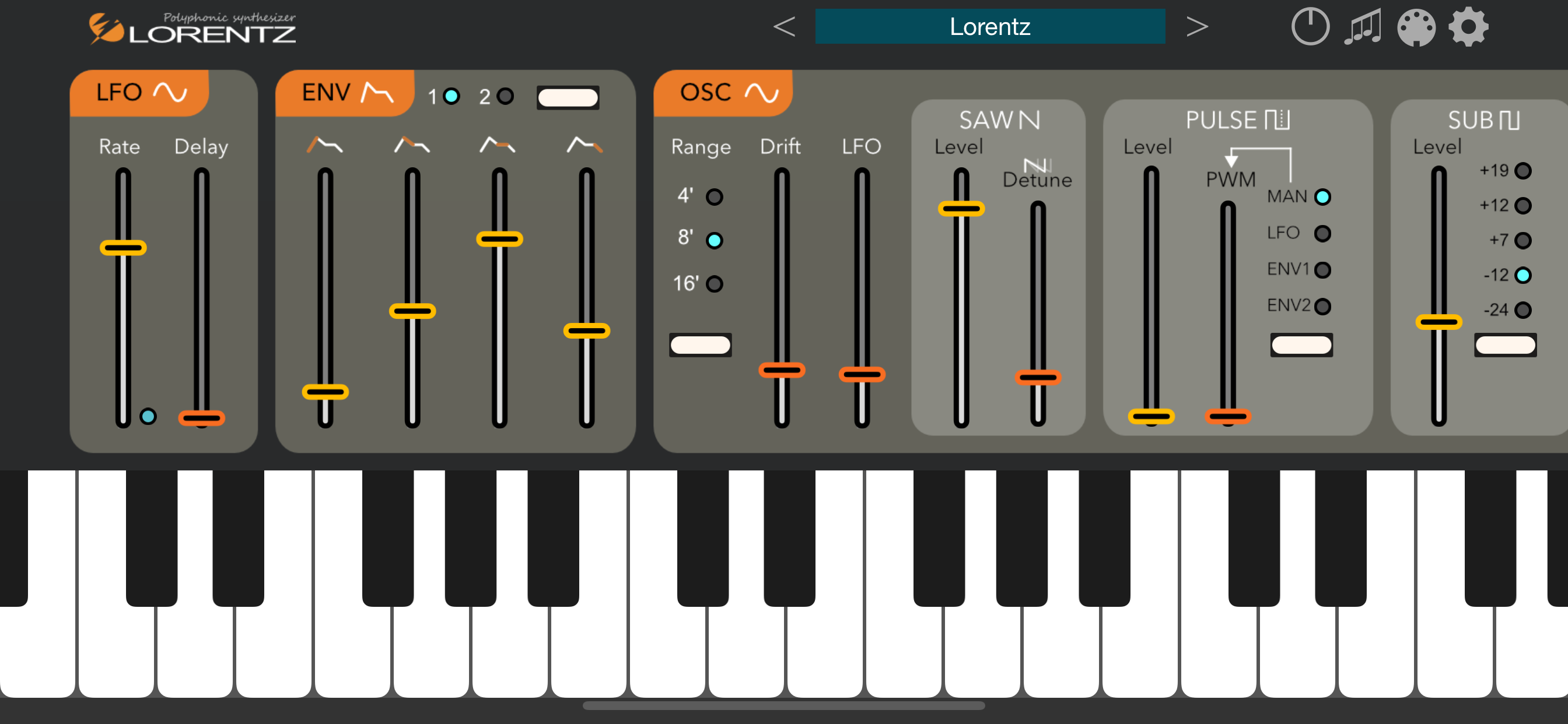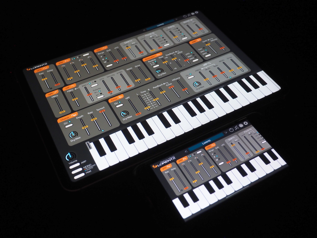 Lorentz is a resonator-based, AUv3-compatible analog modeling synthesizer that can create metallic and distorted sounds.