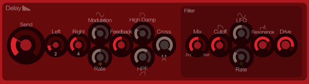 - Time Left/Right: The numbers represent time delay in 16th notes. You can change the tempo setting in the global setting screen.