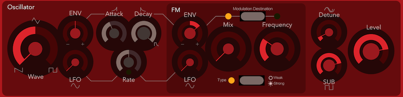 - ENV: Adjusts the depth of modulation applied by the ENV to the wave.